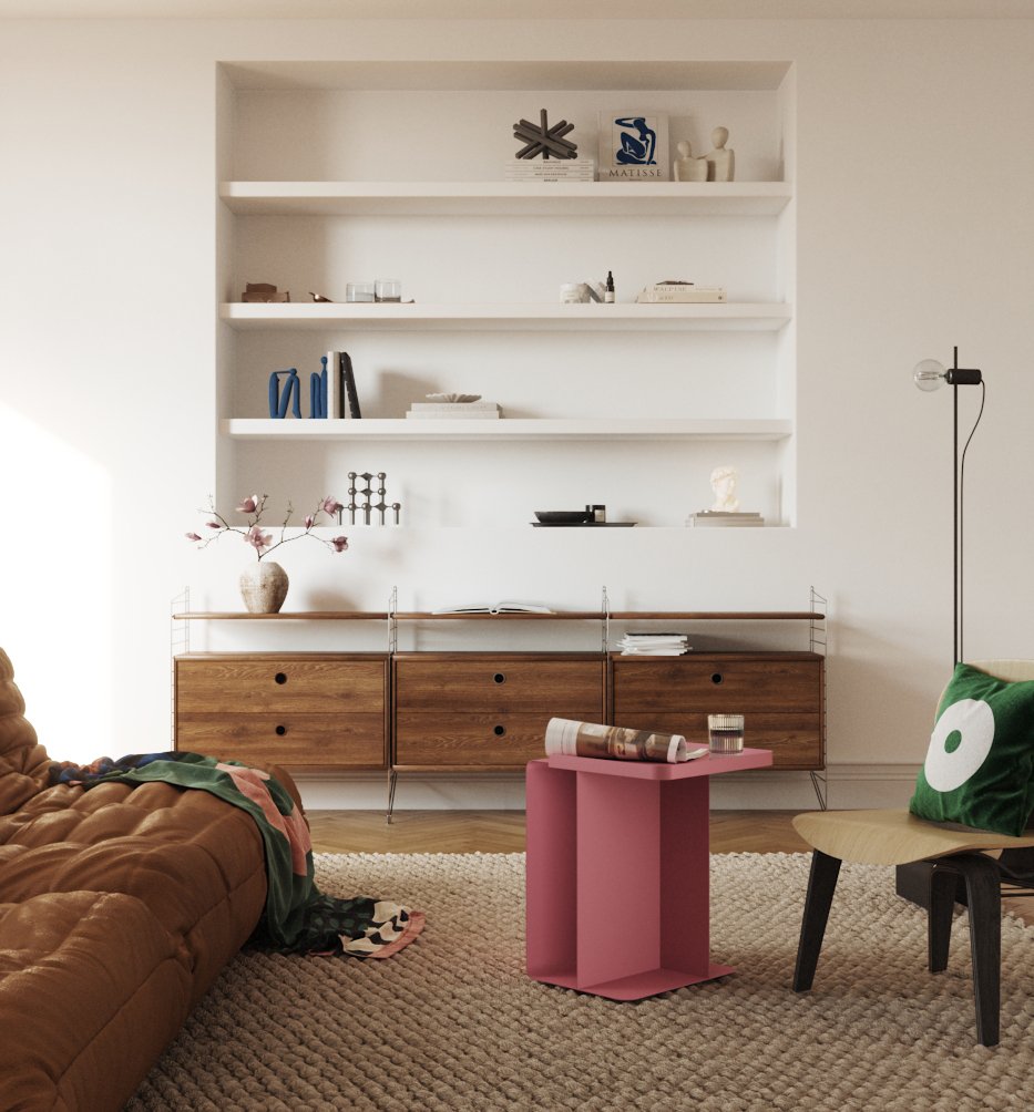 The Actress side table brings elegance to any space, with vertical shelving for keeping books within reach, ideal for morning coffees or evening reads.